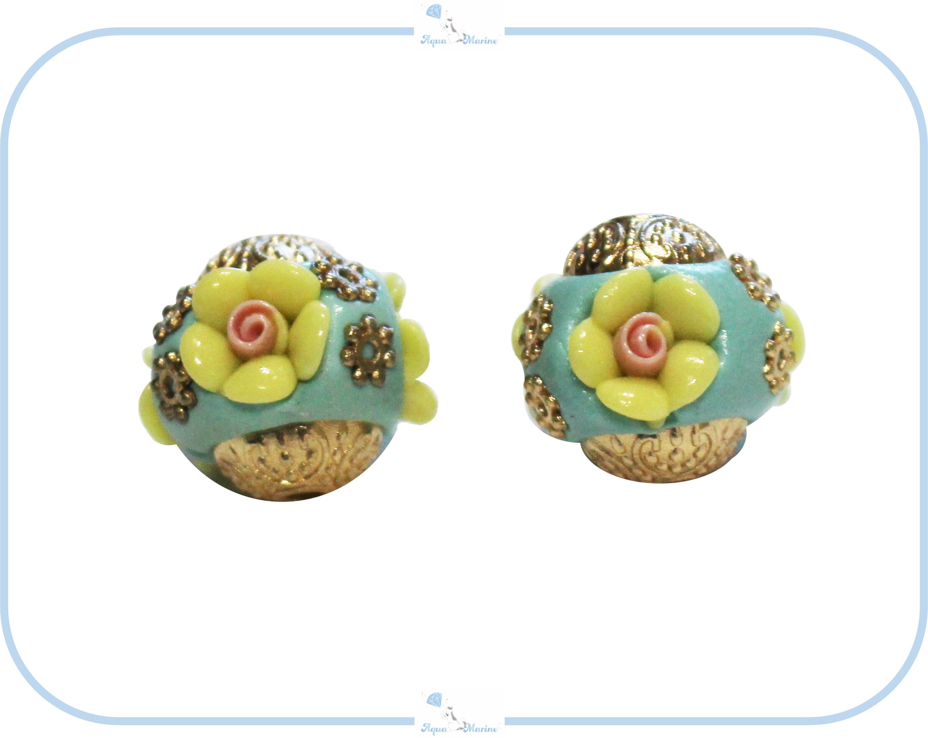 IM247-1 インドネシア ビーズ チャーム 1個売り 花 イエロー ハンドメイド パーツ 素材 材料 海外 アジアン オリエンタル エスニック フラワー