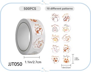 ES117 シール 500枚入 1ロール 可愛い 面白い 猫の手 肉球 デザイン thank you 感謝 ステッカー ご褒美シール キッズ ごほうび プレゼント ラッピング 海外インポート