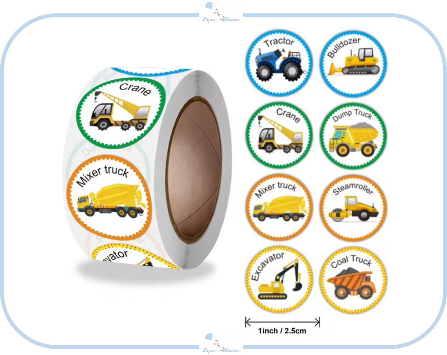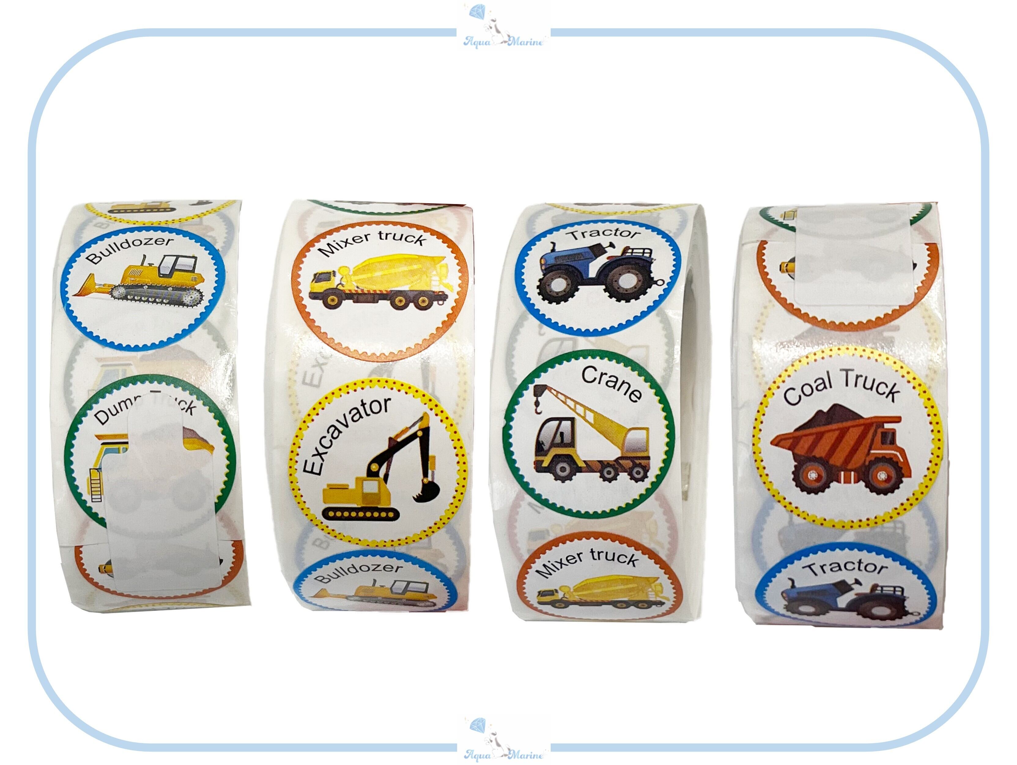 ES118 シール 500枚入 1ロール 乗り物 トラック デザイン ブルドーザー ステッカー ご褒美シール キッズ ごほうび プレゼント ラッピング 海外インポート