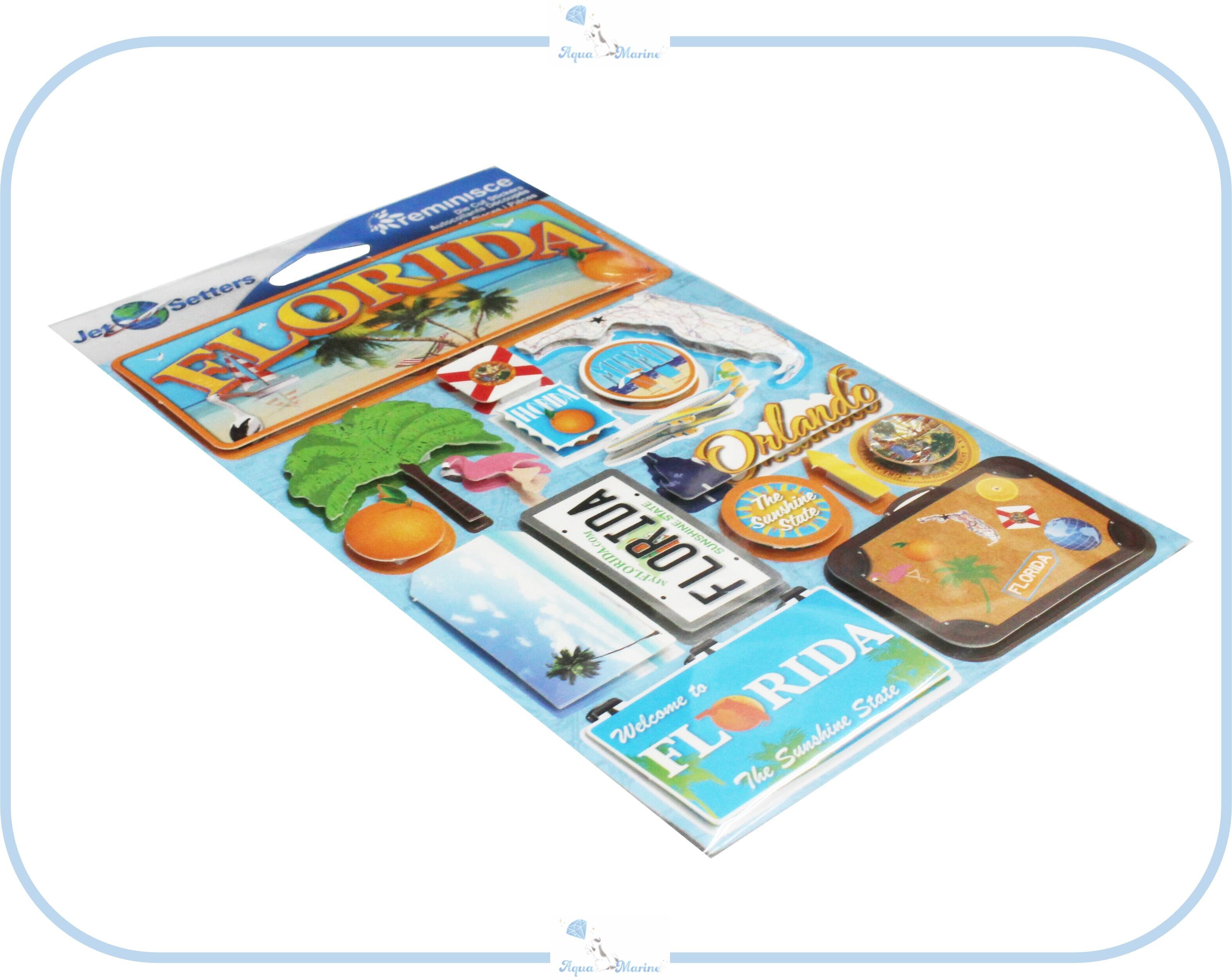EJ120 Jet Setters Collection 3Dシール 立体 ステッカー FLORIDA フロリダ アメリカ ヤシの木 海 ビーチ デザイン 海外 旅行 バッグ 飾り素材 アルバム作り スクラップブッキング
