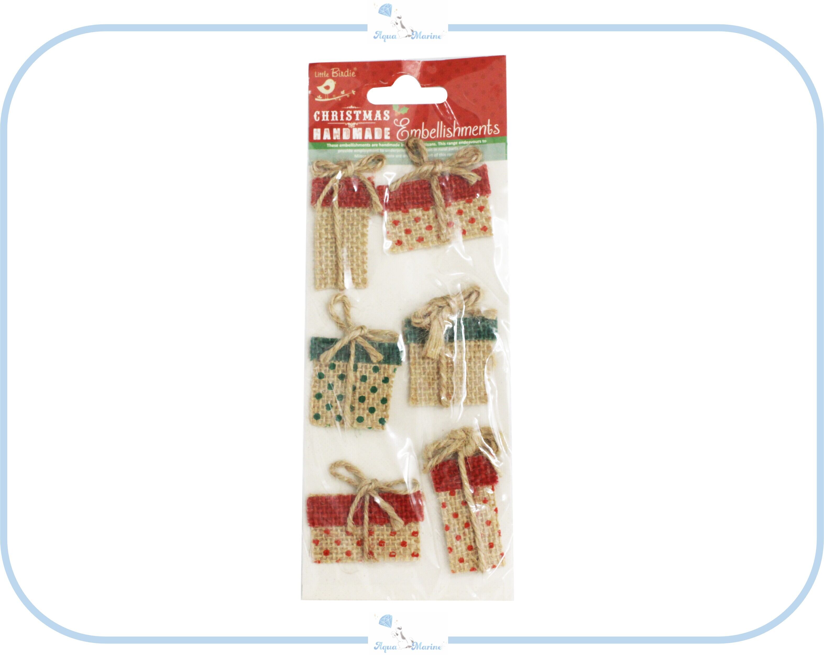 EJ132 Little Birdie 3Dシール 立体 ステッカー Presents クリスマス プレゼントボックス バーラップ素材 飾り デコレーション 素材 アルバム作り スクラップブッキング Xmas Christmas