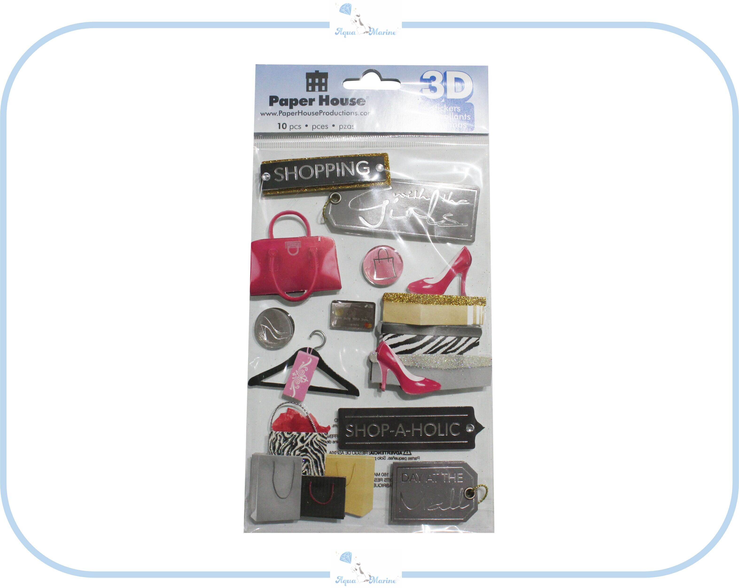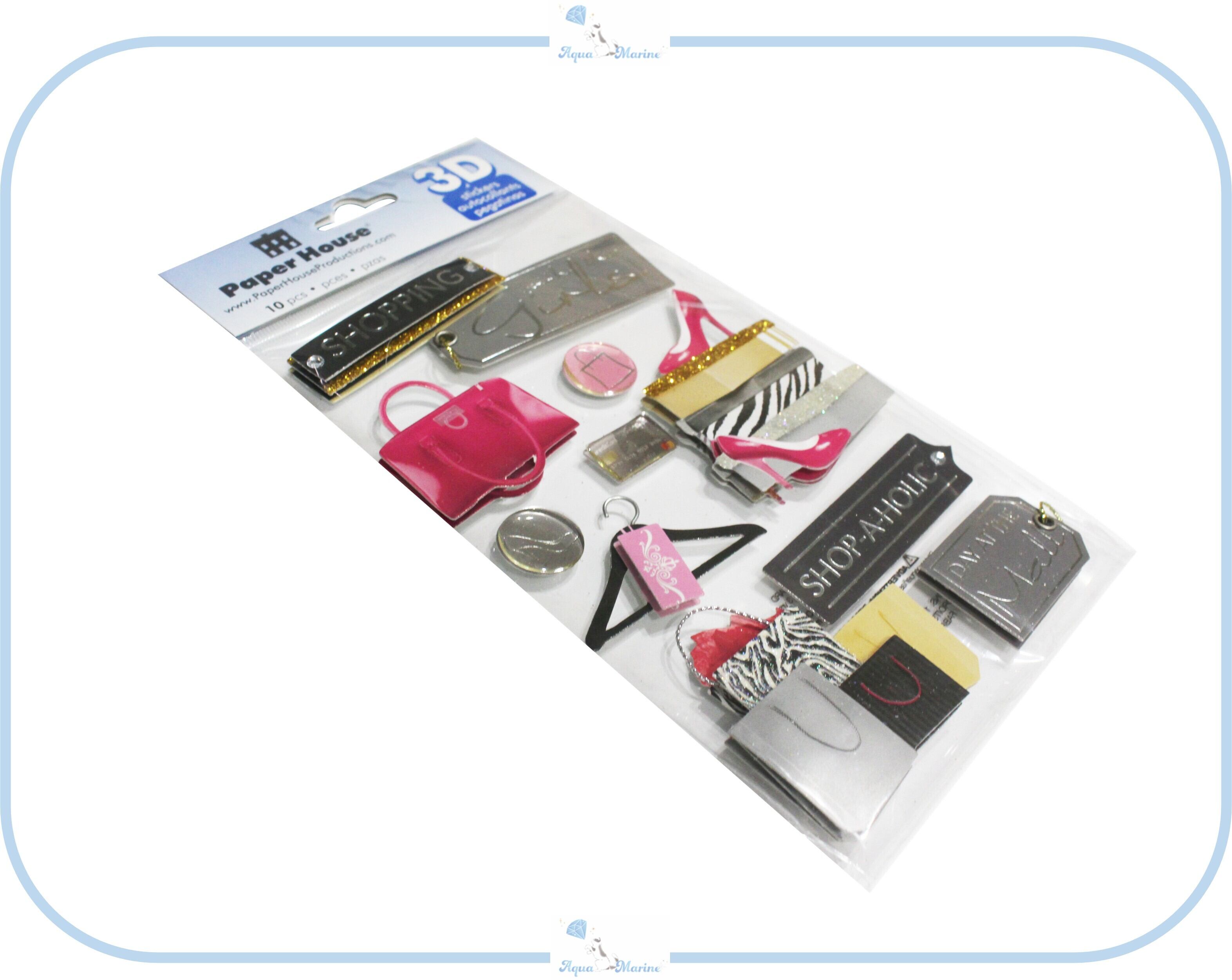 EJ156 Paper House 3Dシール ステッカー 立体 キラキラ Shopping Girls ショッピング 買い物 ショッパー バッグ ハイヒール ピンヒール デザイン エレガント 飾り デコレーション アルバム作り スクラップブッキング