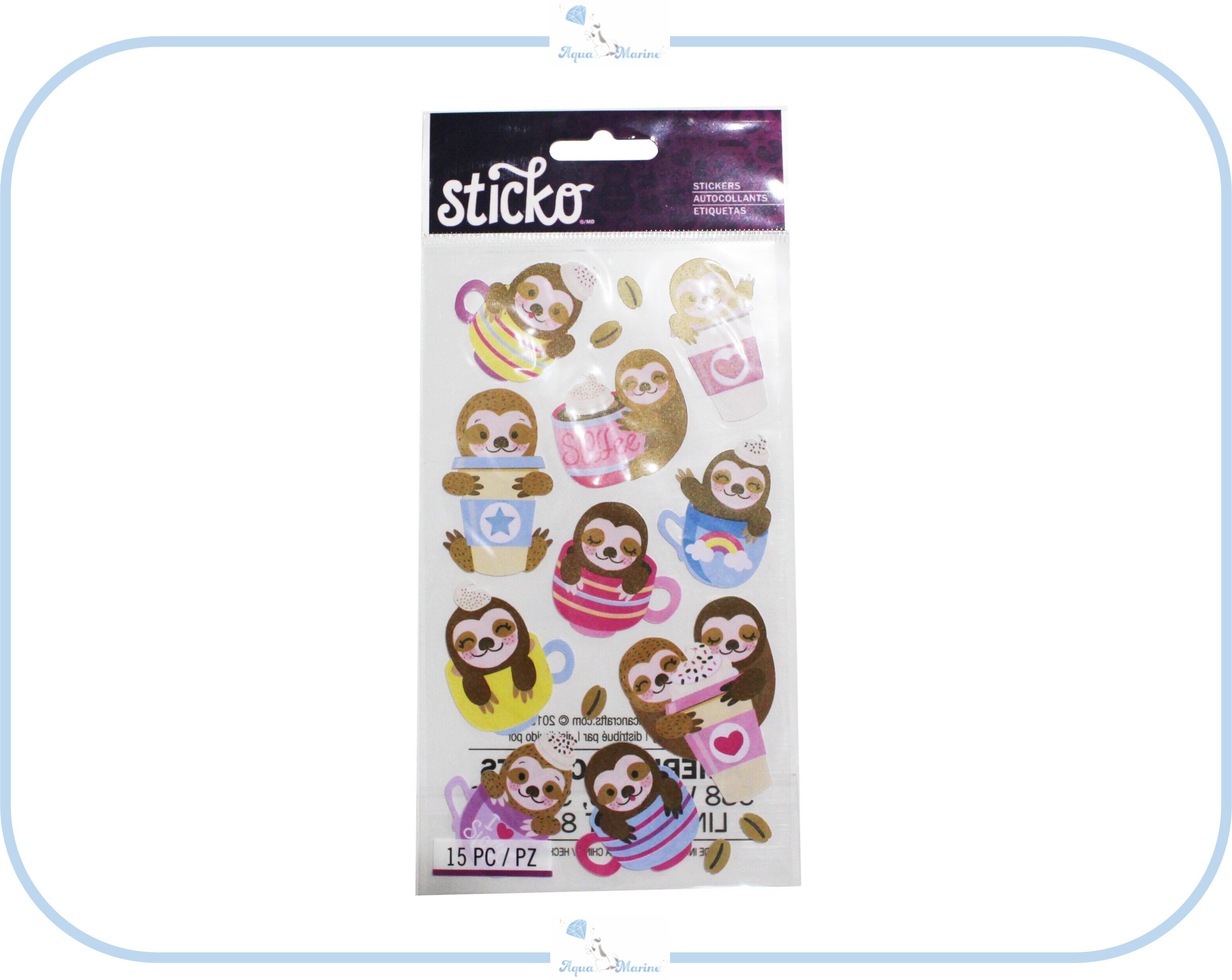 EJ162 Sticko フラットシール ステッカー Sloffee ナマケモノ 動物 アニマル デザイン キッズ ご褒美シール 入園 入学 癒し 可愛い 飾りデコレーション アルバム作り スクラップブッキング