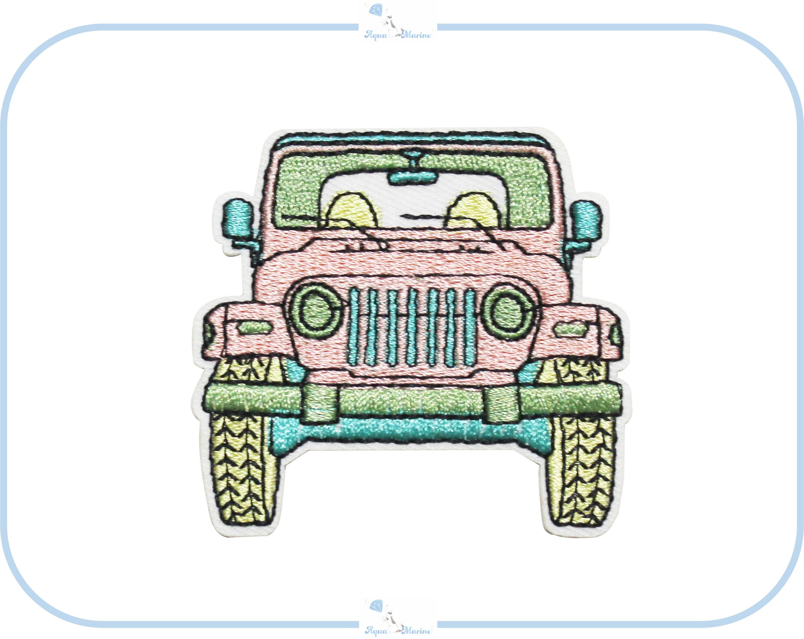 ES125 アップリケ 刺繍 ジープ デザイン 車 キッズ 子供 男の子 乗り物 ピンク イエロー ハンドメイド 材料 アイロン ワッペン リメイク アレンジ 服飾 手芸
