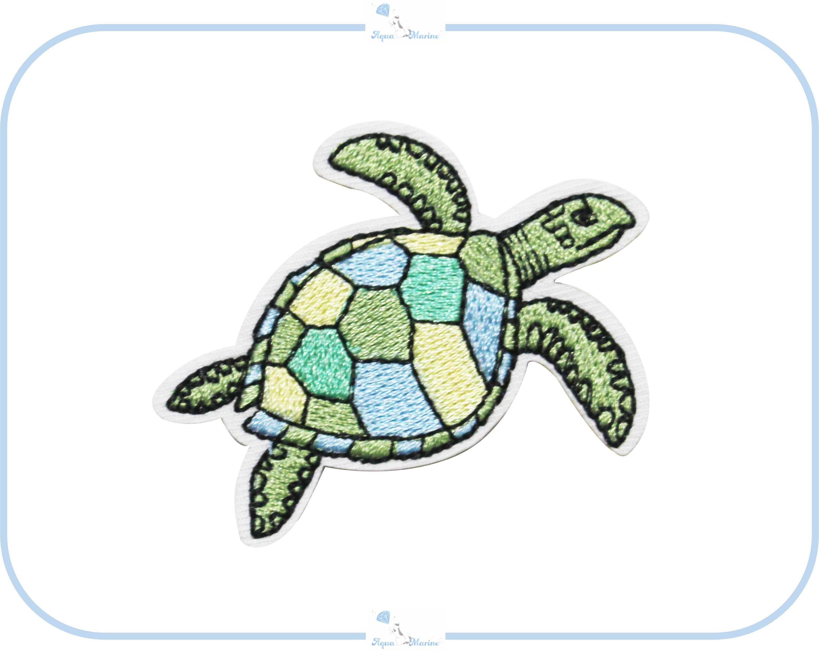 ES127 アップリケ 刺繍 カメ デザイン かめ 亀 タートル Turtle グリーン 動物 海の生き物 水族館 ハンドメイド 材料 入園 入学 キッズ アイロン ワッペン リメイク アレンジ 服飾 手芸