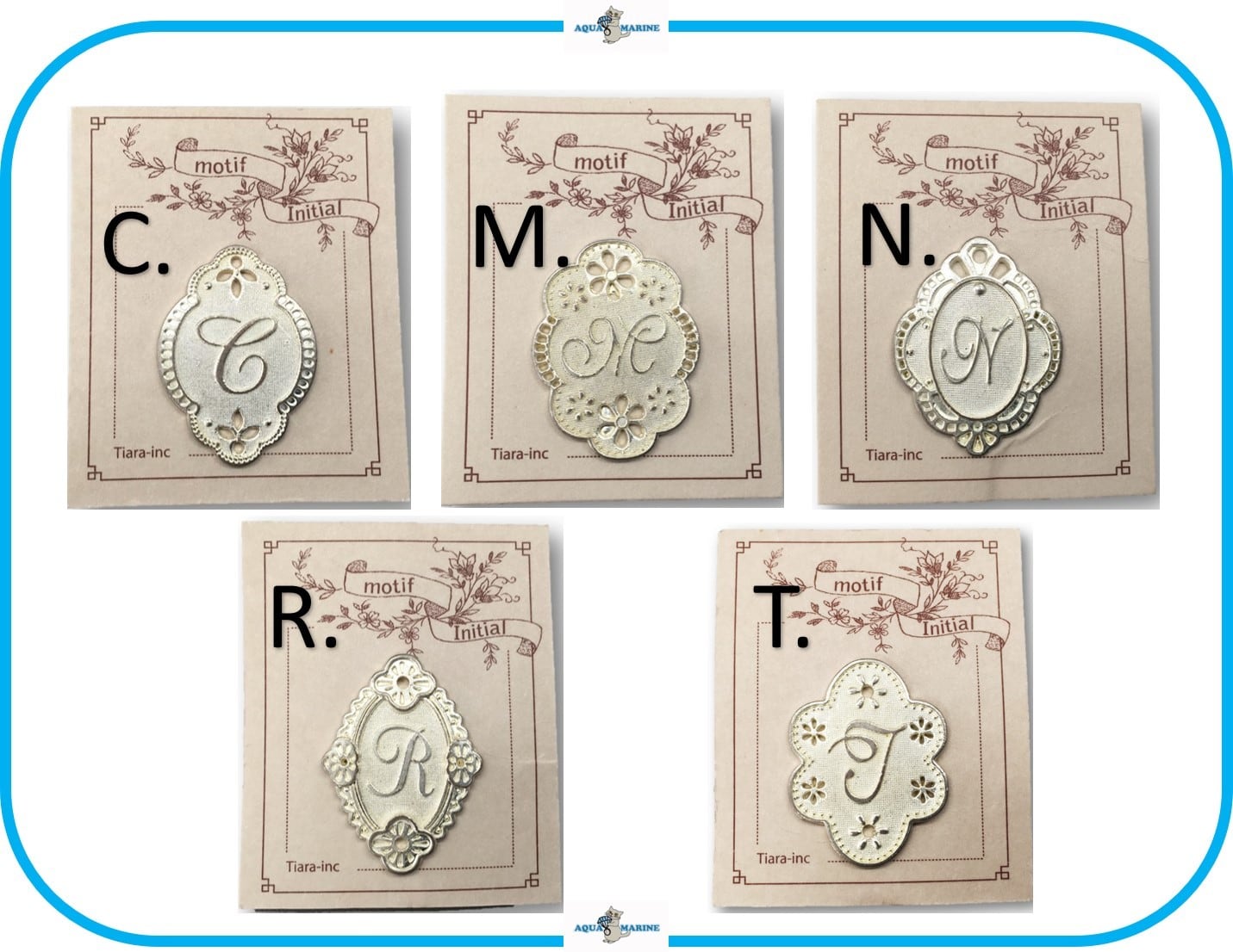 R イニシャル メダル C/M/N/R/T シルバー 2個入 ハンドメイド アクセサリー チャーム 手芸 服飾 レジン パーツ アルファベット