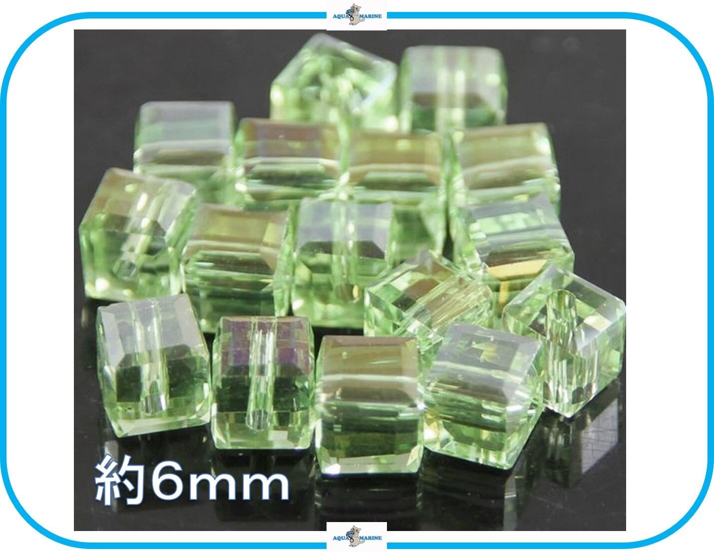 IM224 クリスタル ビーズ キューブ 6mm クリア フルーツグリーン 緑 24個 ハンドメイド アクセサリー 材料 手芸 正方形 キラキラ 再入荷