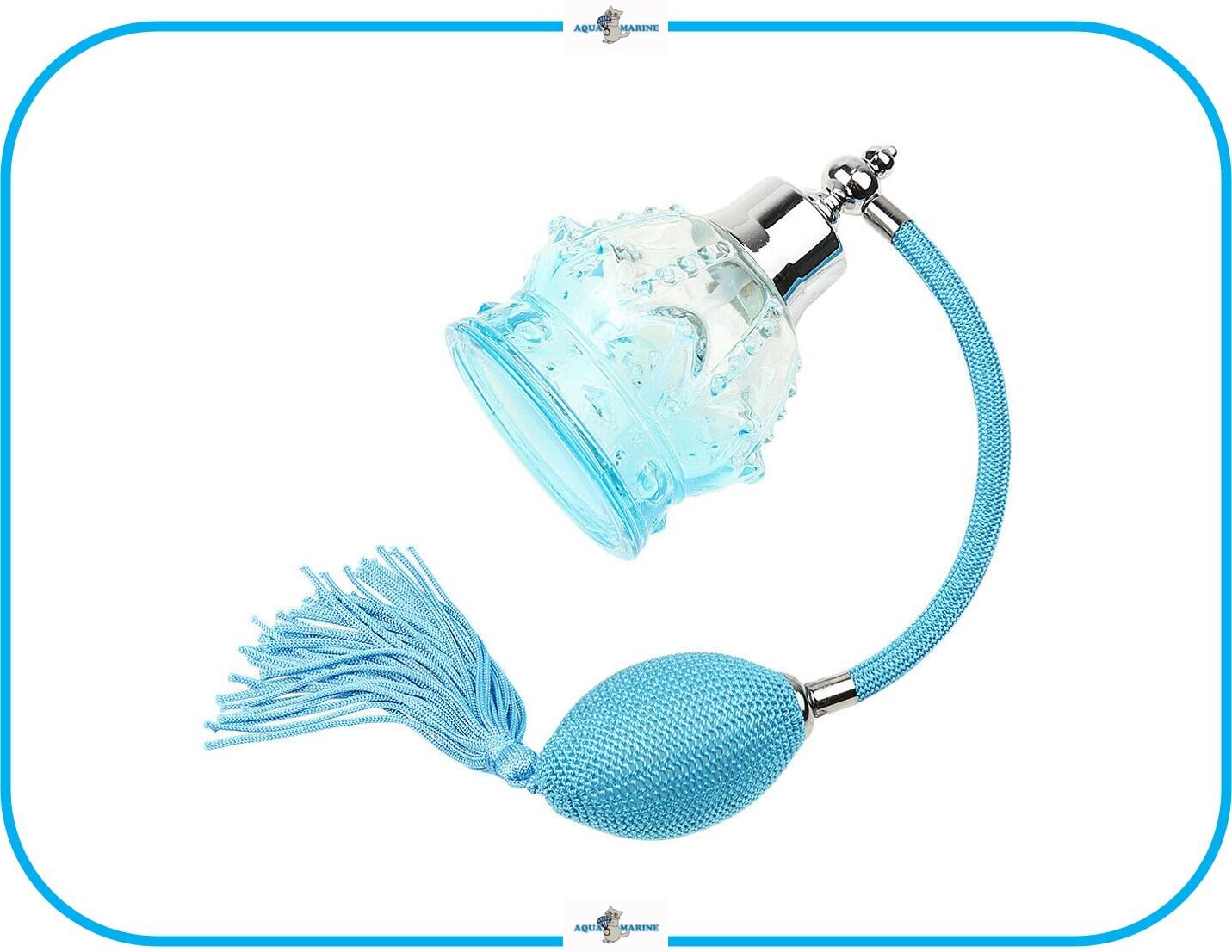 E21-2 パフュームボトル ブルー タッセル 香水瓶風 インテリア アンティーク調 ヴィンテージ風 デザイン コレクション パステル ガラス製