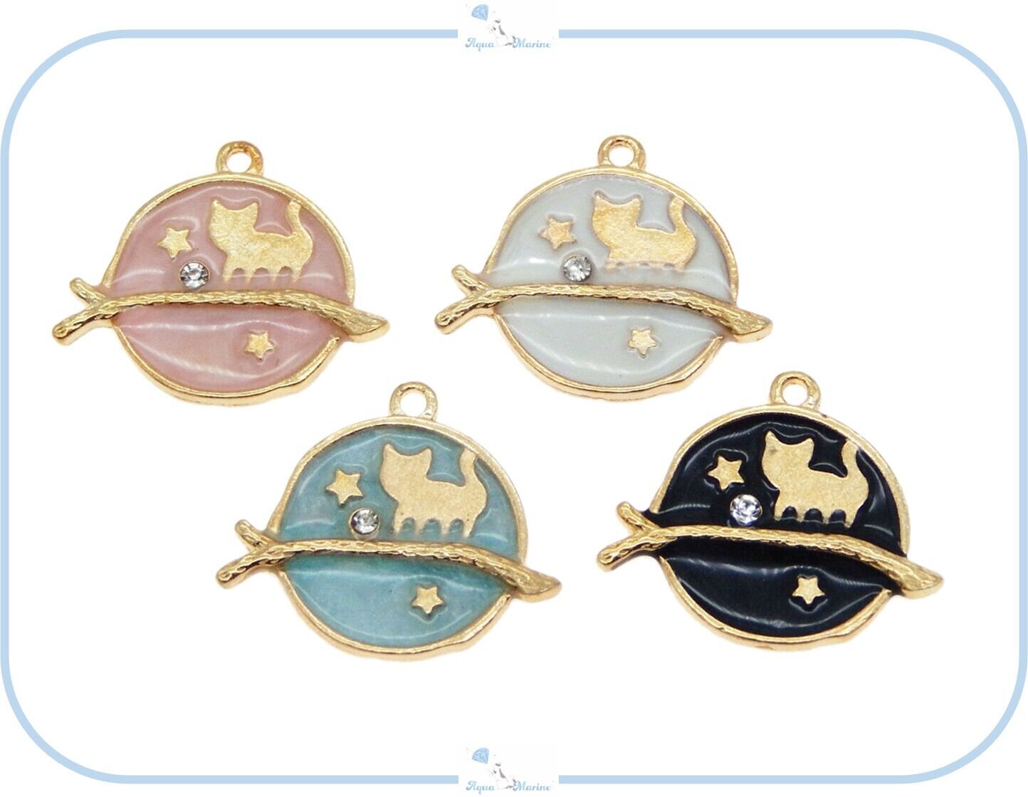 E166 チャーム 猫 スター 【 ホワイト / ブラック / ピンク 】 星 ねこ ネコ 夜空 ハンドメイド 材料 アクセサリー パーツ デザイン ネックレス ブレスレット ピアス