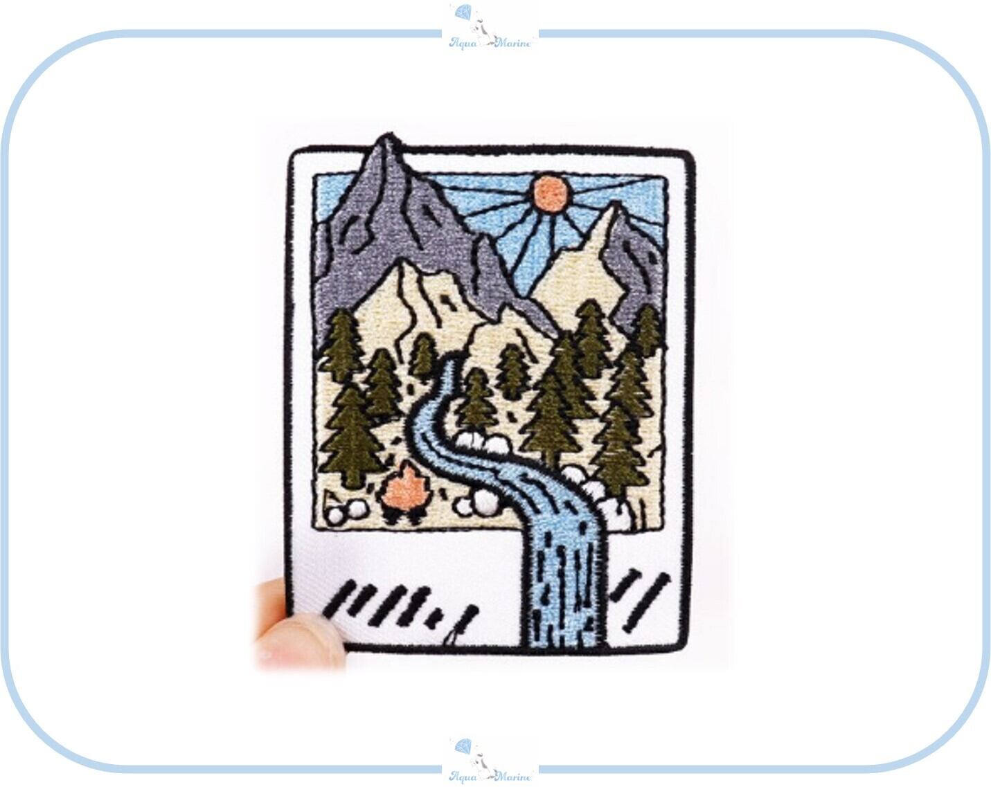 ES65 アップリケ 刺繍 デザイン mountain river 山 川 アウトドア ハンドメイド リメイク 刺繍 手芸 海外 インポート アイロン ワッペン