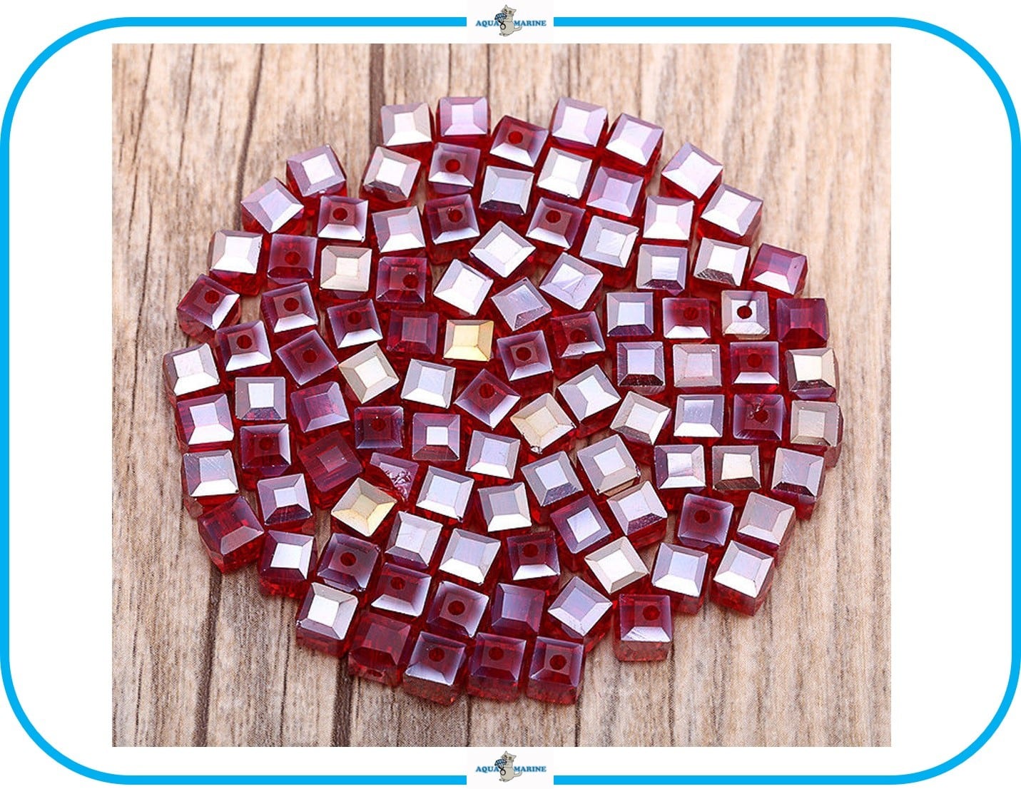 IM217 クリスタル キューブ ビーズ 6mm レッド AB 30個セット 赤 ハンドメイド アクセサリー 手芸 材料 素材 キラキラ 正方形 デザイン