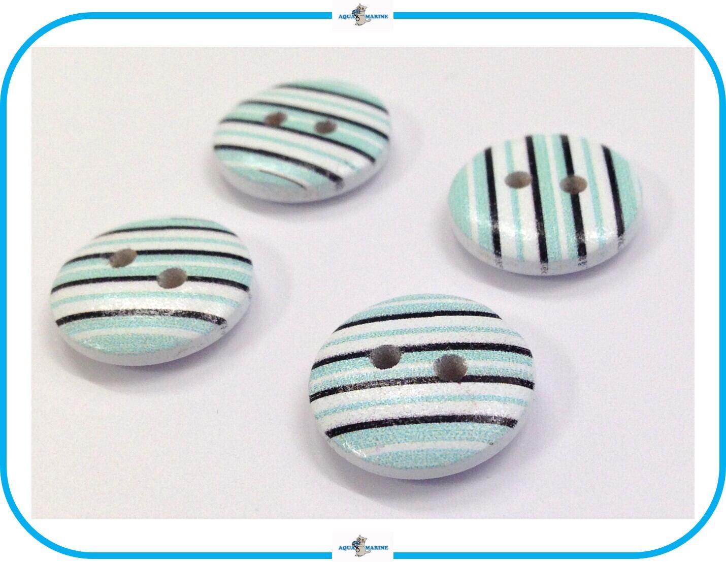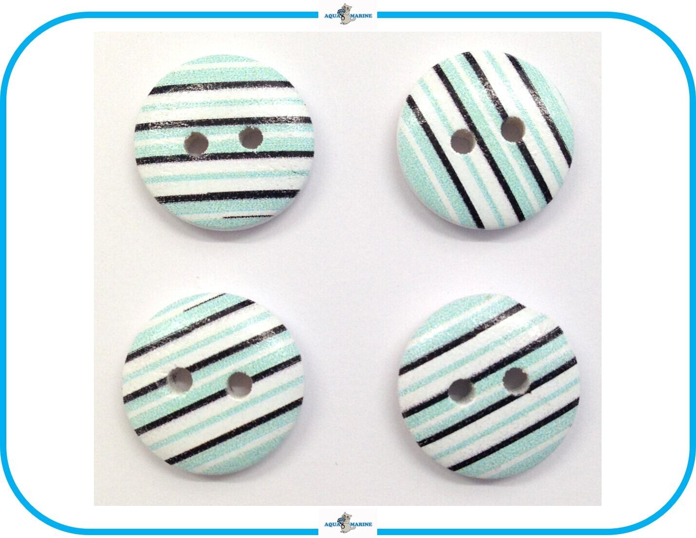 E91 ウッドボタン 木製 デザイン② 4個セット 2ホール 1.5cm 水色 ボーダー ブルー ハンドメイド 材料 服飾裁縫 飾り素材 手芸パーツ