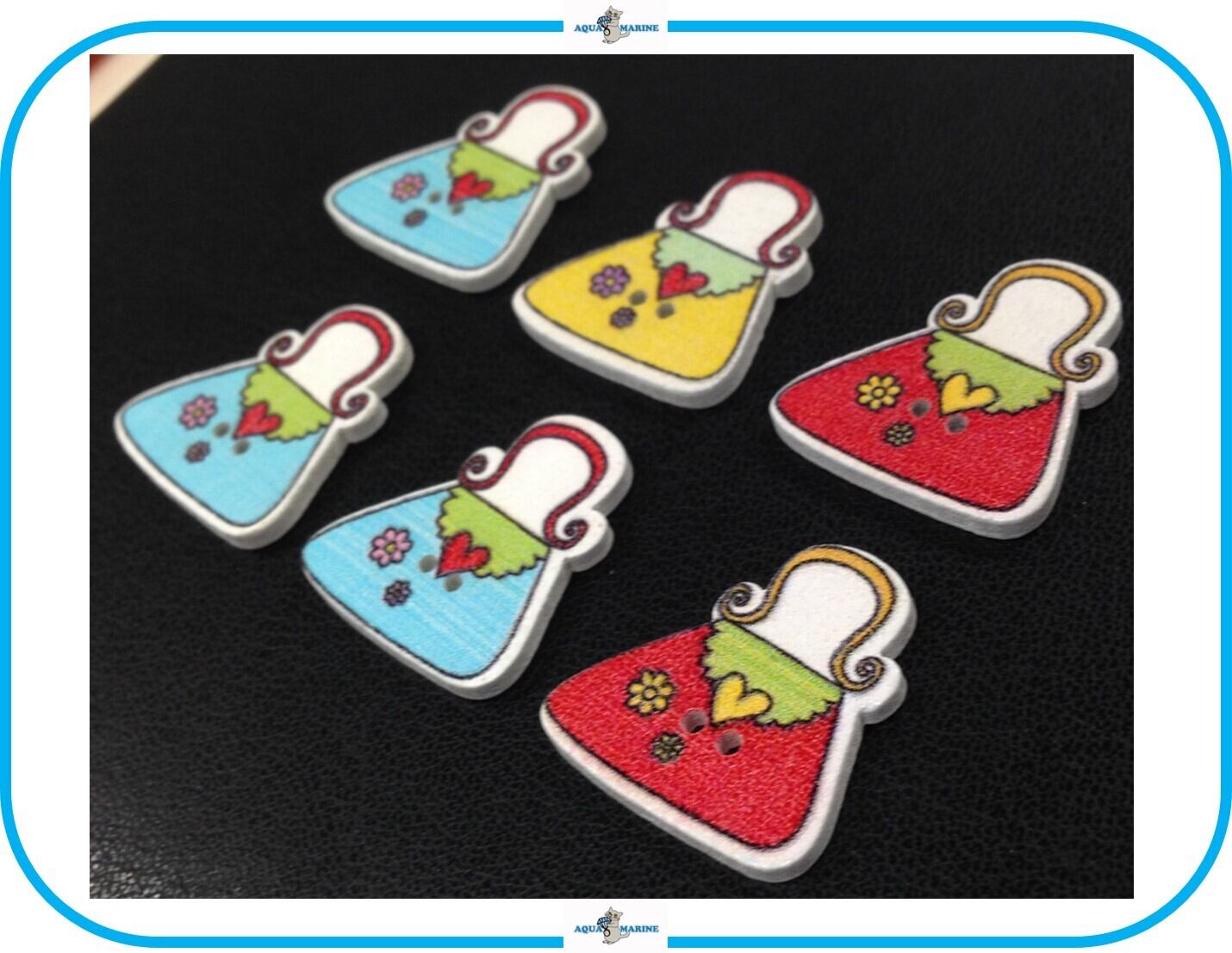 E152 ウッドボタン 木製 バッグ かばん デザイン ミックス カラフル 6個セット 2ホール ハンドメイド 材料 服飾裁縫 飾り素材 手芸パーツ