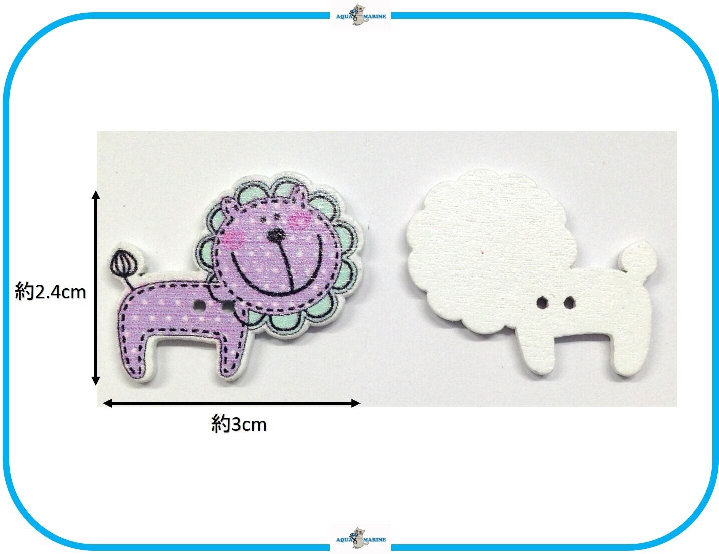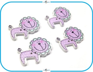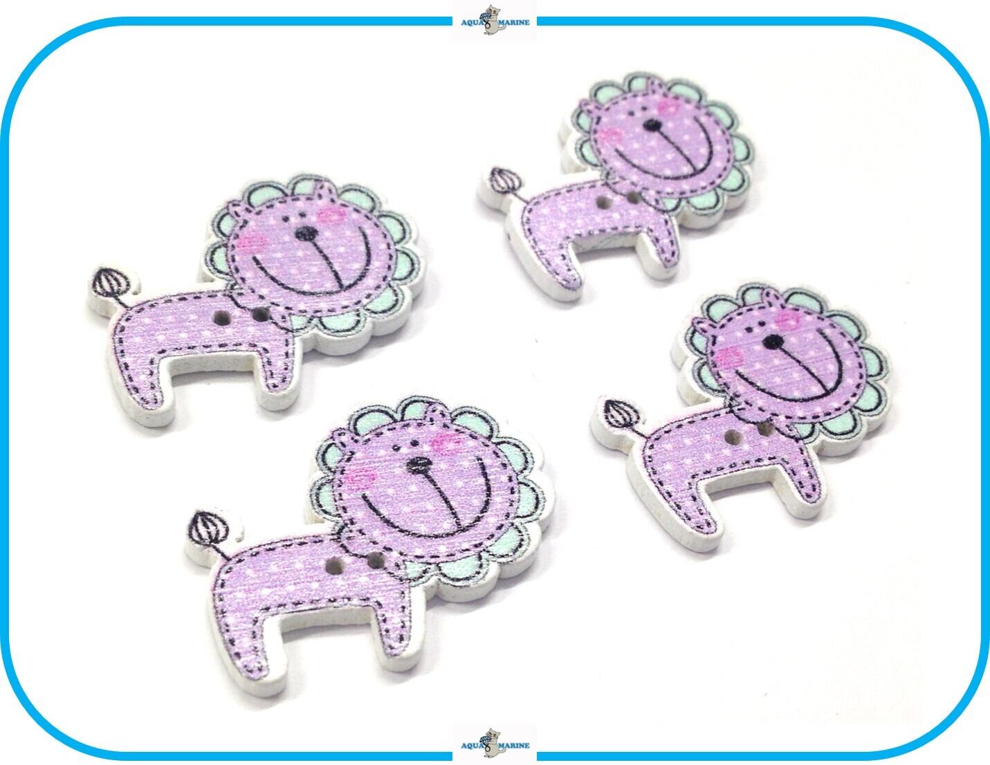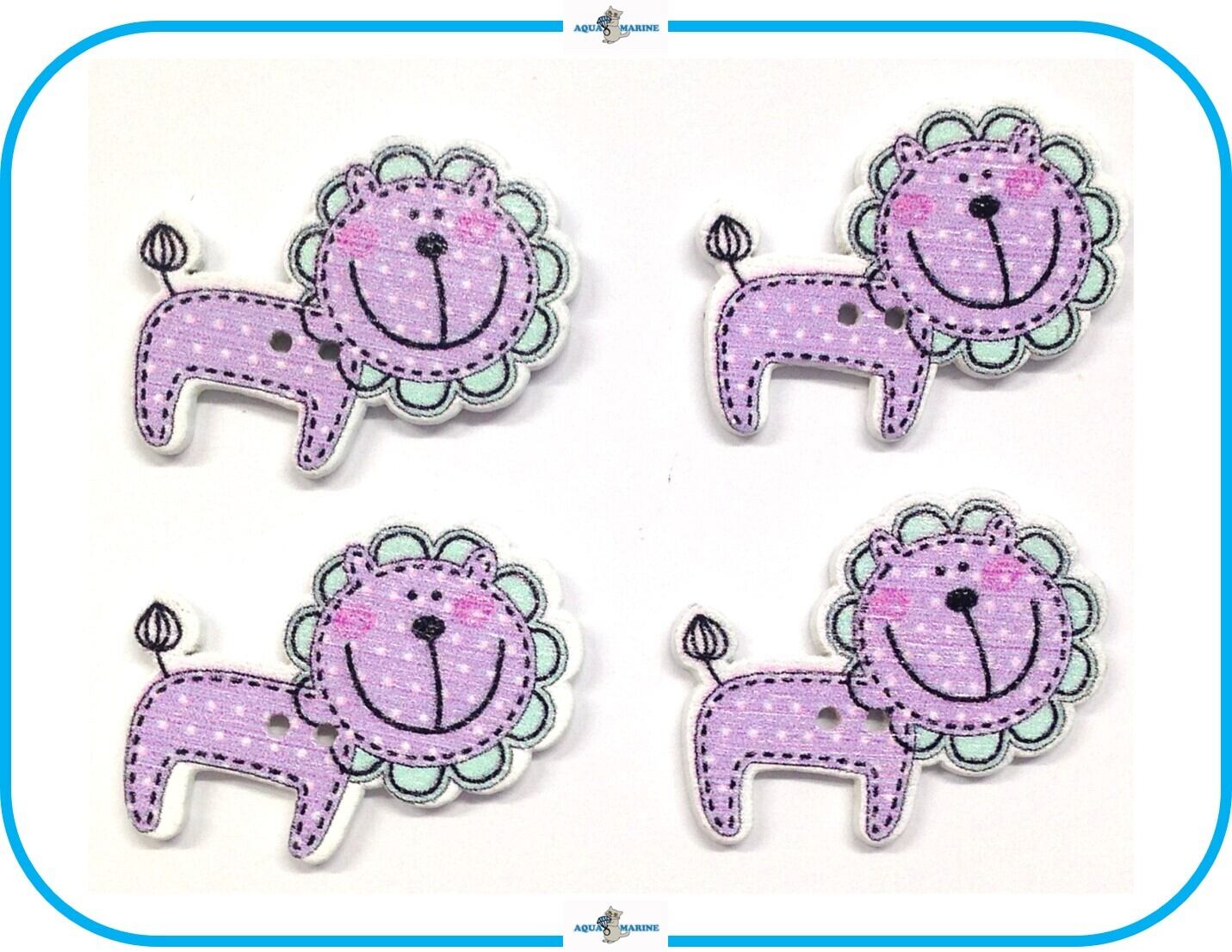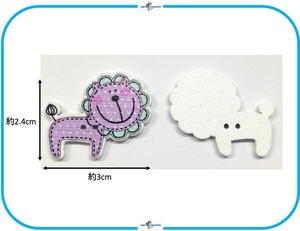 \在庫ラスト/E237 ウッド ボタン 木製 ライオン ⑥ パープル 4個セット 2ホール ハンドメイド 手作り 手芸 材料 パーツ 服飾 動物 モチーフ デザイン