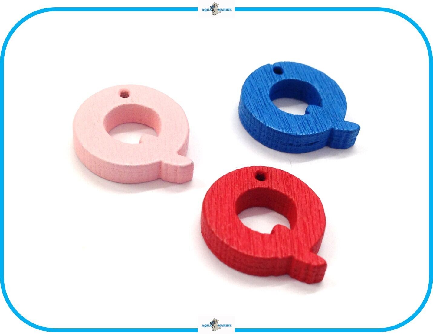 E238【 Q 】アルファベット ウッド ボタン 1ホール 3個セット 木製 イニシャル 名前 カラフル ハンドメイド 材料 素材 手芸 裁縫 パーツ