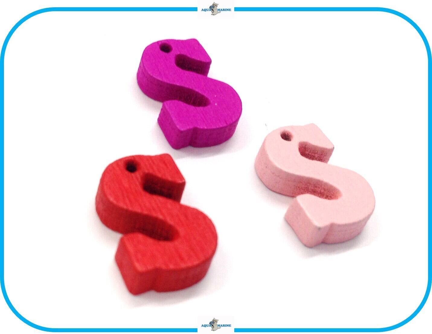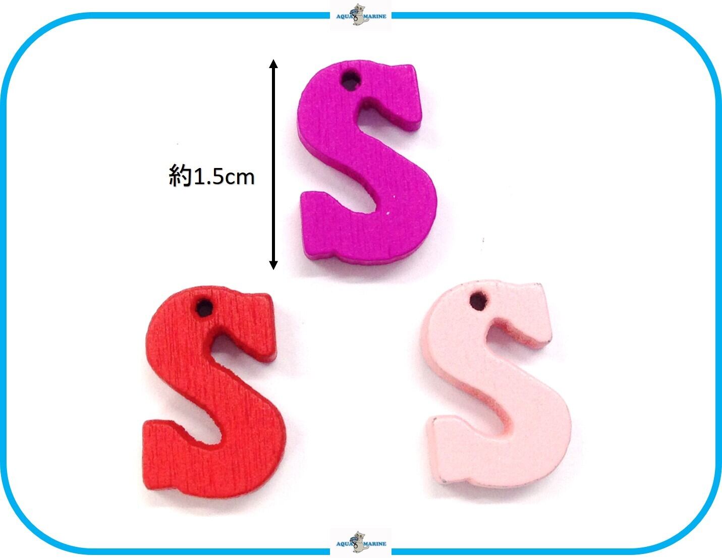 E238【 S 】アルファベット ウッド ボタン 1ホール 3個セット 木製 イニシャル 名前 カラフル ハンドメイド 材料 素材 手芸 裁縫 パーツ