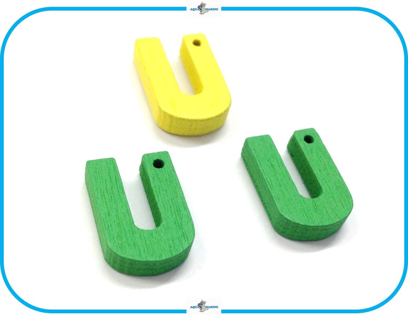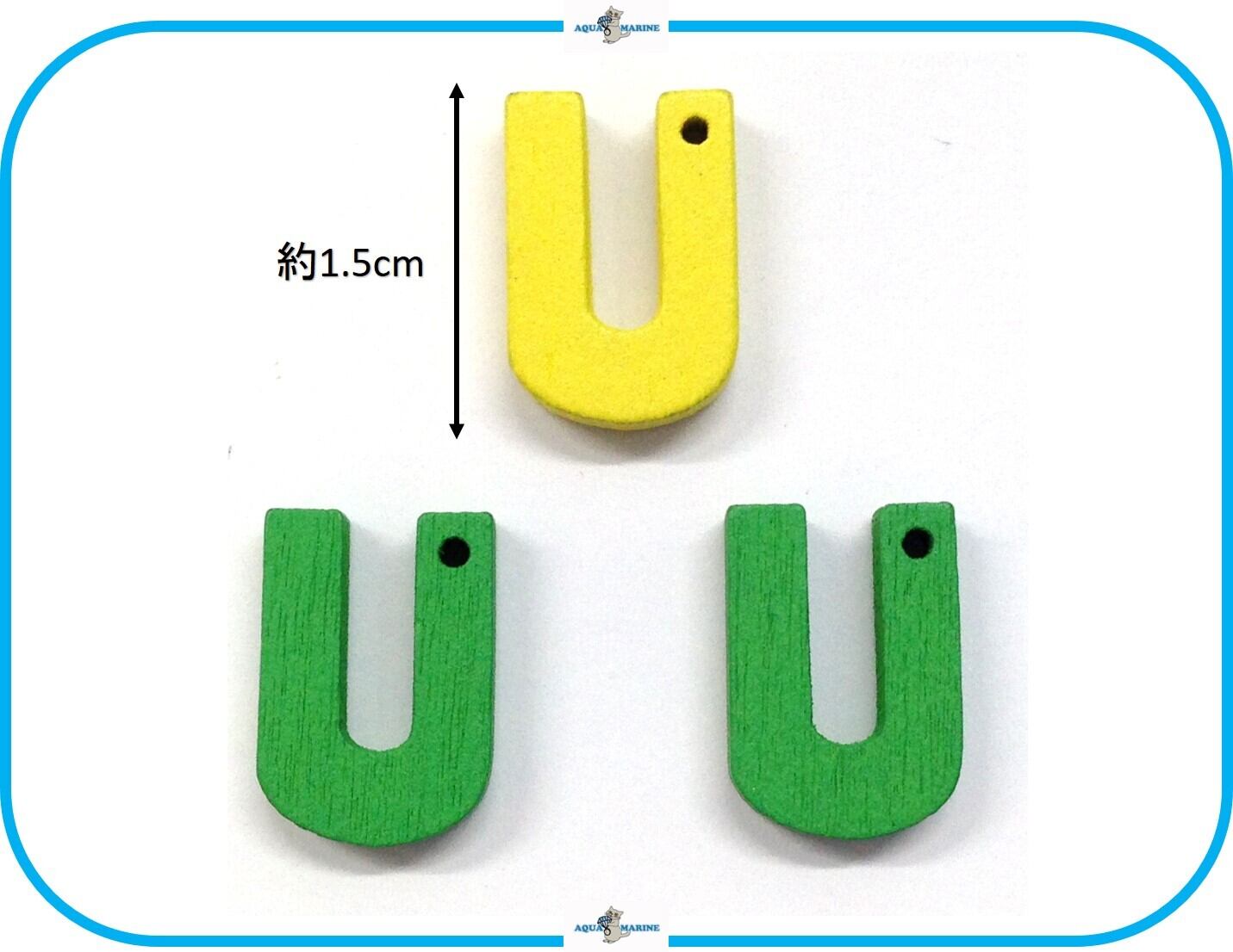 E238【 U 】アルファベット ウッド ボタン 1ホール 3個セット 木製 イニシャル 名前 カラフル ハンドメイド 材料 素材 手芸 裁縫 パーツ