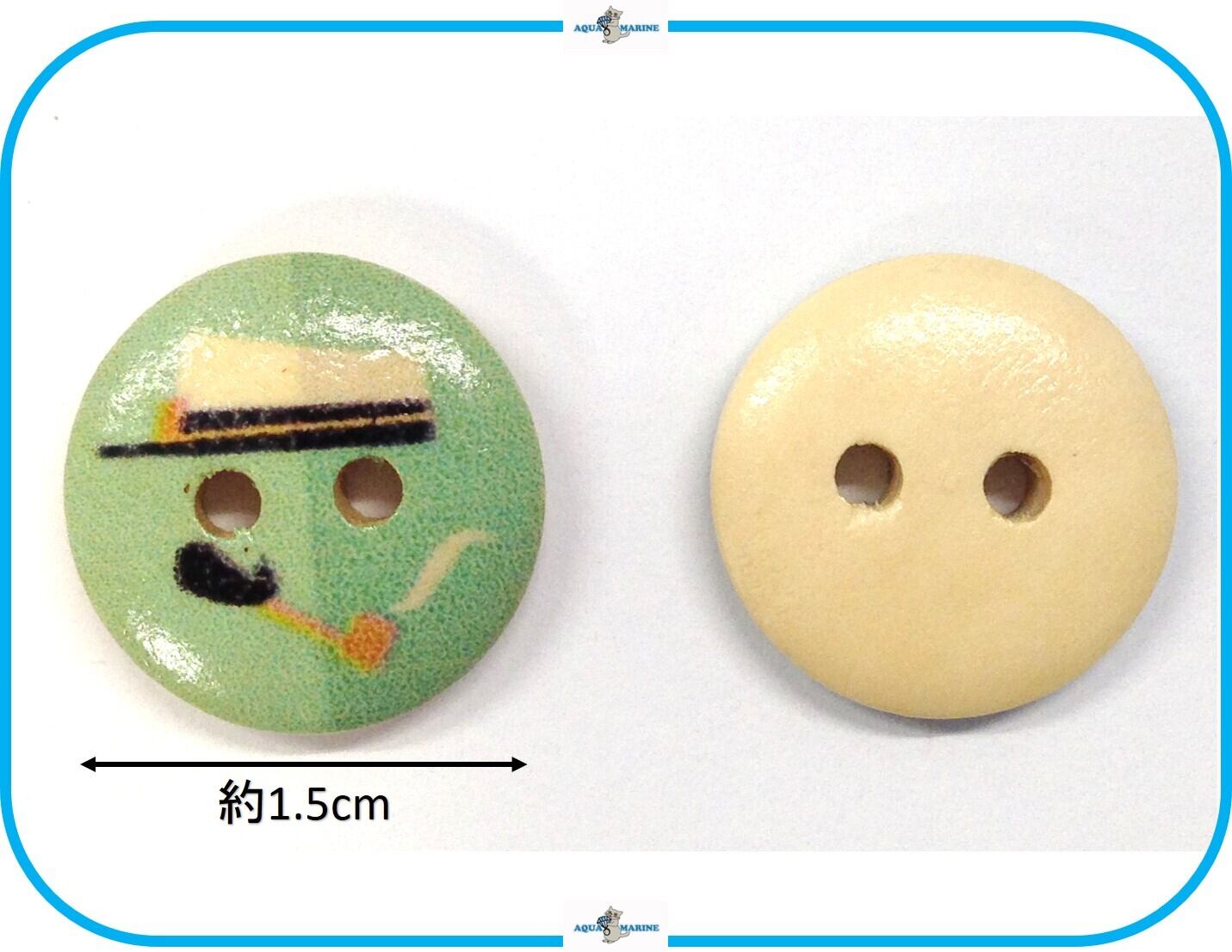 E239 DIY ウッド ボタン 木製ぼたん【デザイン① 5個セット】