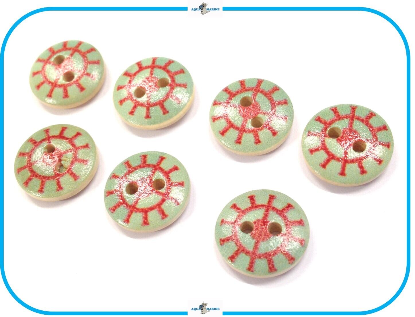 E239 ⑤ ウッド ボタン 木製 7個セット 2ホール ハンドメイド 手作り 手芸 材料 パーツ 服飾 海 航海 マリン モチーフ デザイン レア 素材