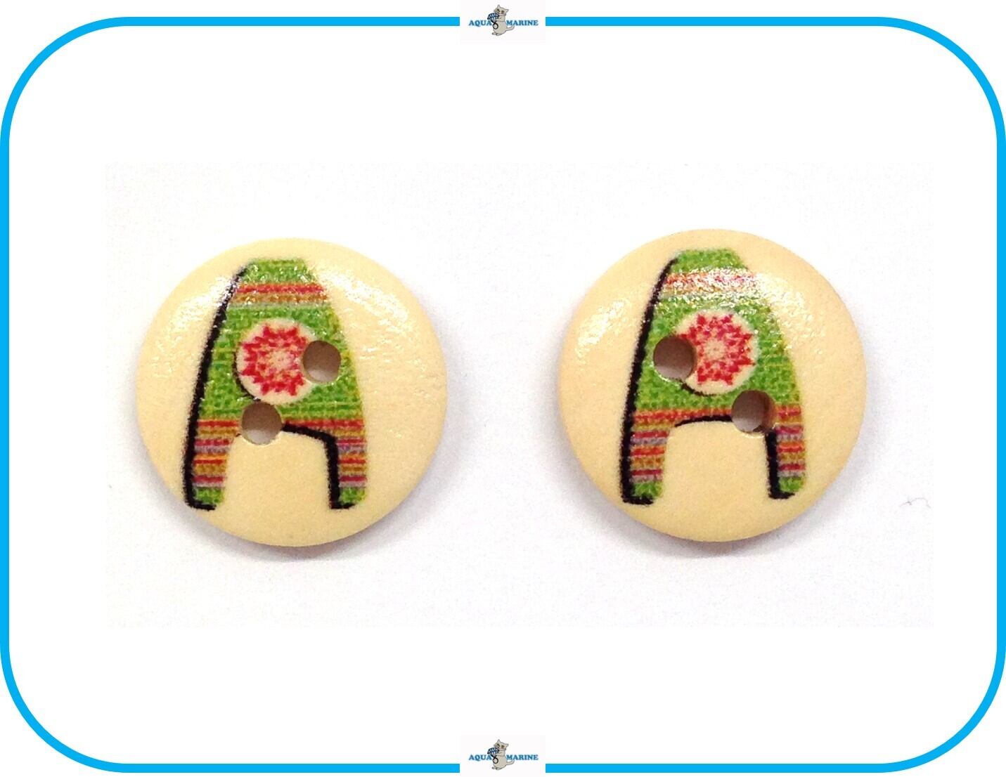 E241【 A 】アルファベット ウッド ボタン クリスマス 2ホール 2個セット 木製 イニシャル ハンドメイド 材料 素材 手芸 裁縫 DIY パーツ