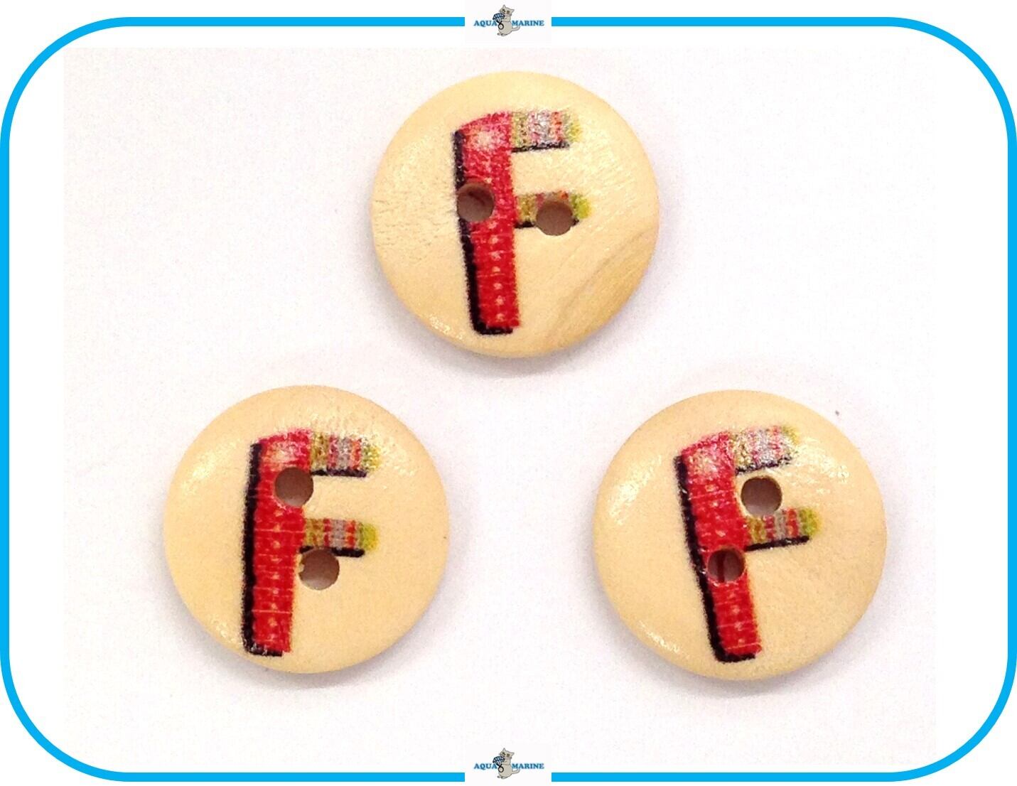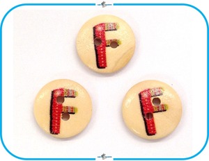 E241【 F 】アルファベット ウッド ボタン クリスマス 2ホール 3個セット 木製 イニシャル ハンドメイド 材料 素材 手芸 裁縫 DIY パーツ
