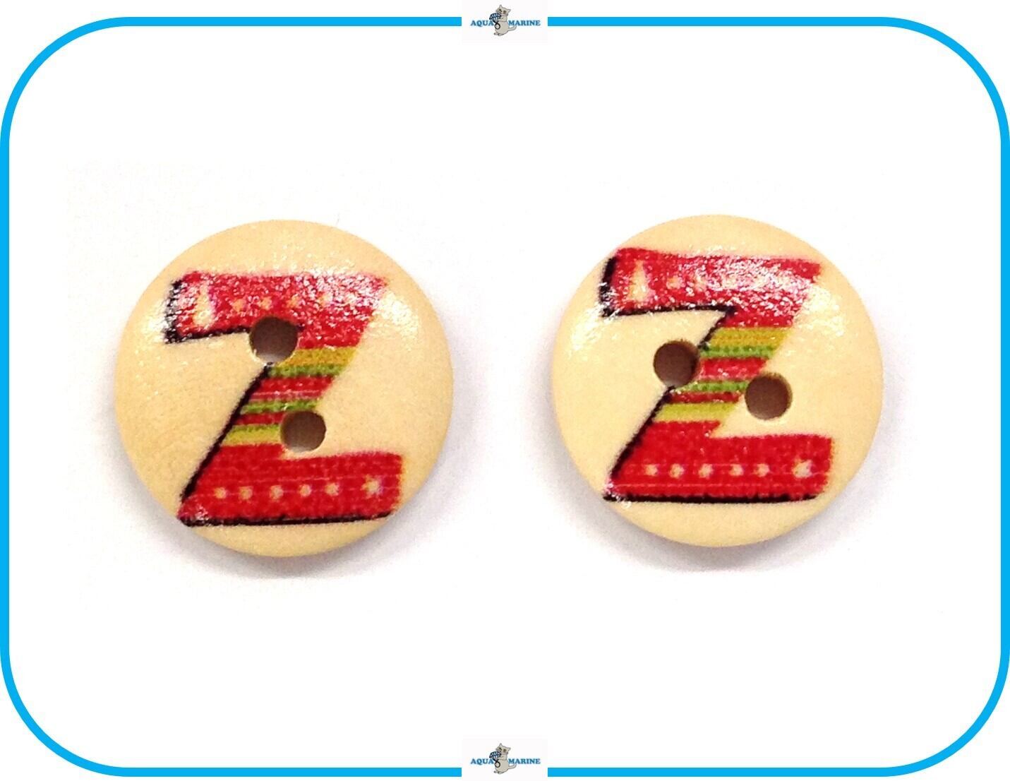 E241【 Z 】アルファベット ウッド ボタン クリスマス 2ホール 2個セット 木製 イニシャル ハンドメイド 材料 素材 手芸 裁縫 DIY パーツ